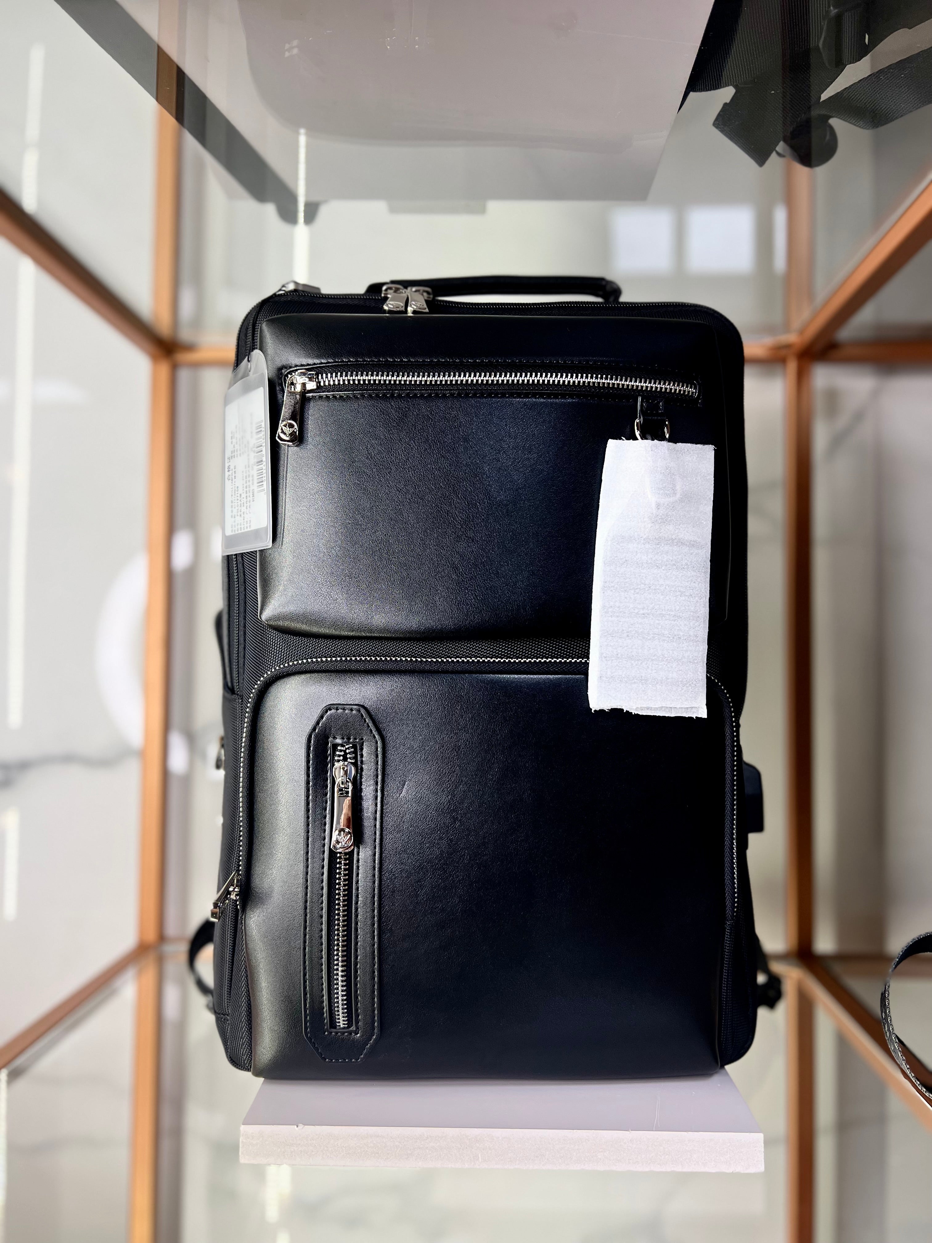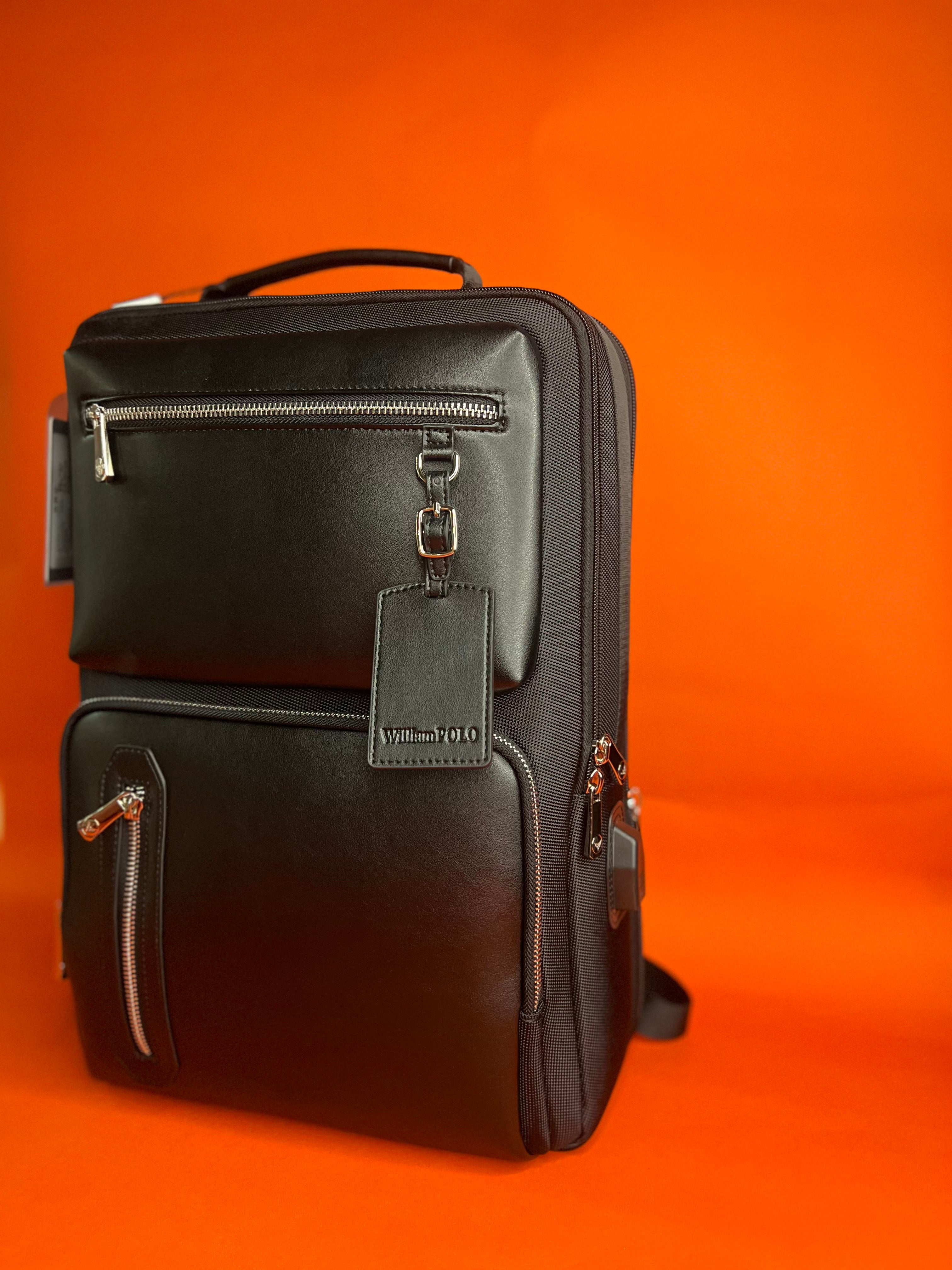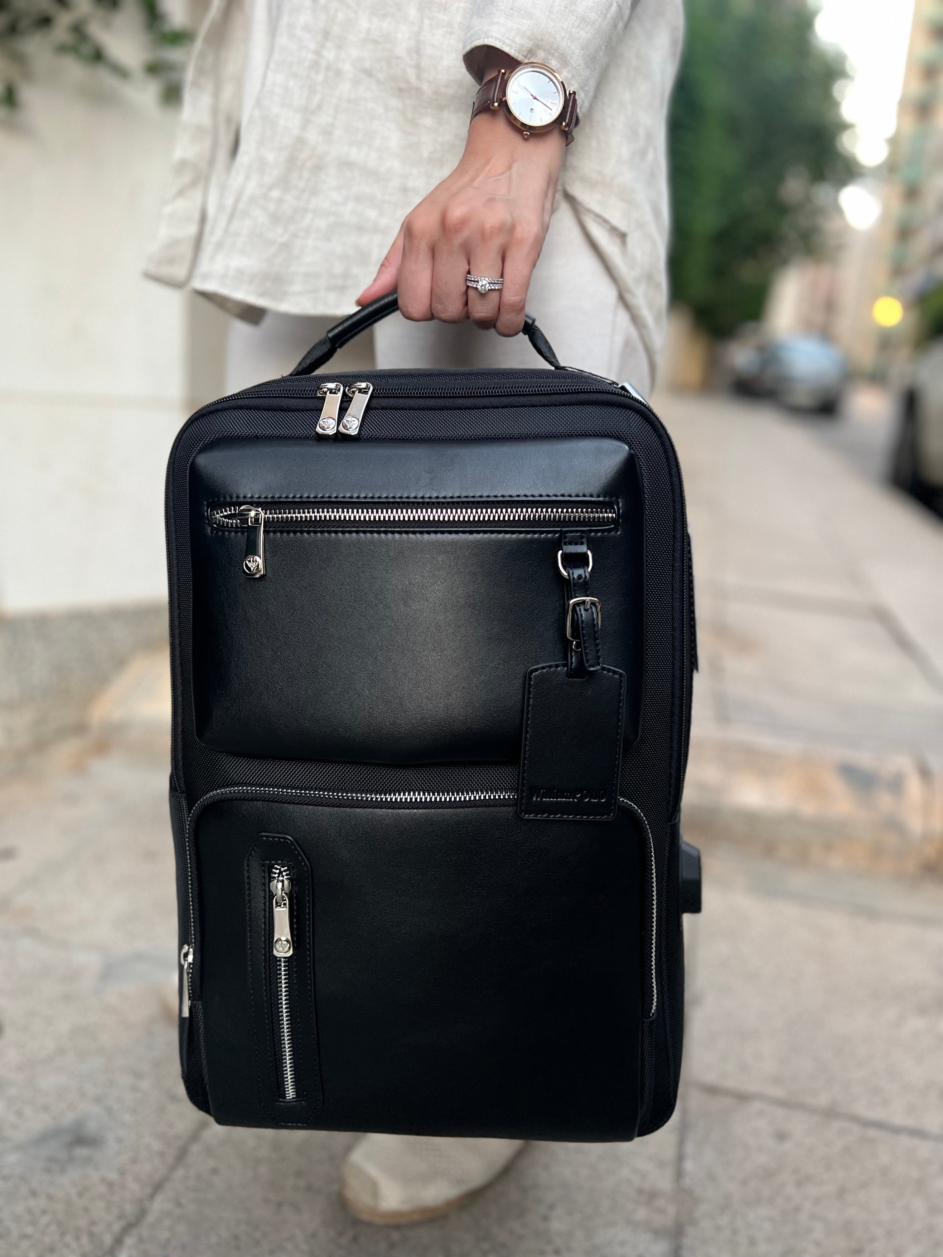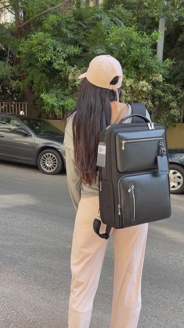 Handcrafted from premium vegan leather, this sleek backpack enhances your work attire, setting a new standard for sophistication.